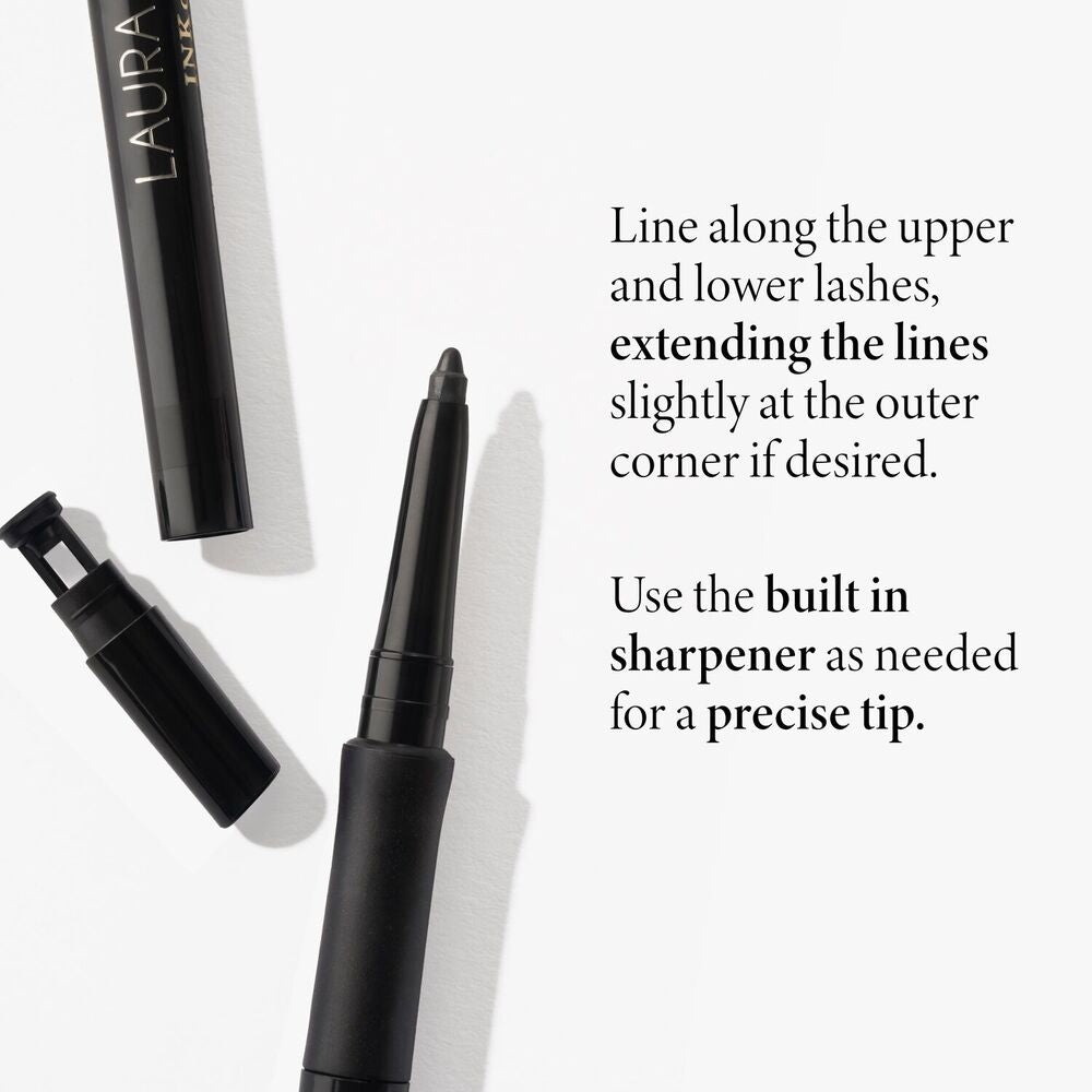 - For fine lines, sharpen the tip and line your eyes as close to your upper and/or lower lashes as possible. Extend the lines slightly at the outer corner.