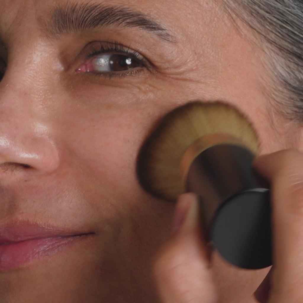 - Swirl or dip the brush into powder and gently tap off any excess. Apply to skin using sweeping, circular motions. For fuller coverage, apply using a patting motion.