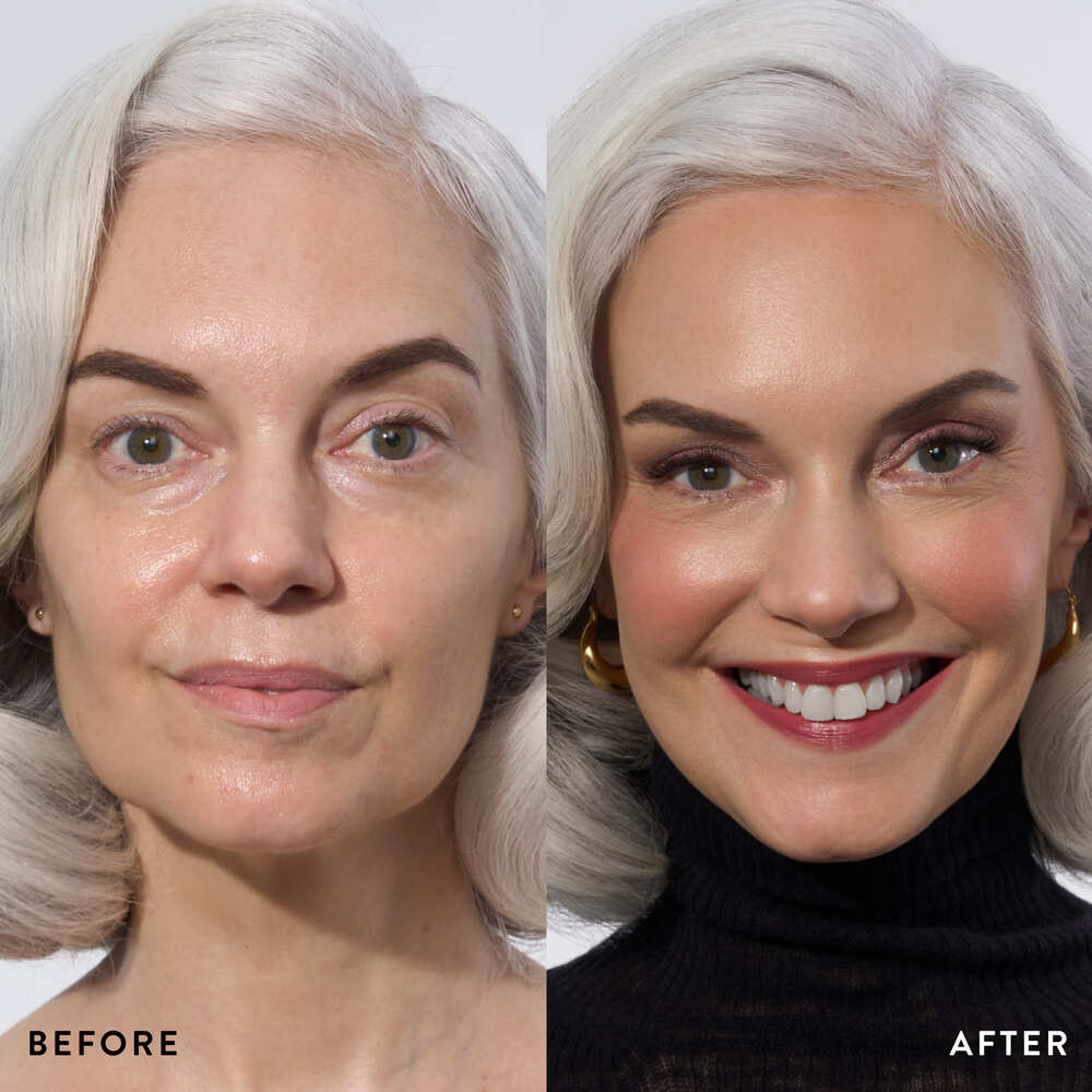- Bronzer: Sweep all over your face to warm up your complexion or contour along the temples, hollows of the cheeks, and jawline for a more sculpted look.