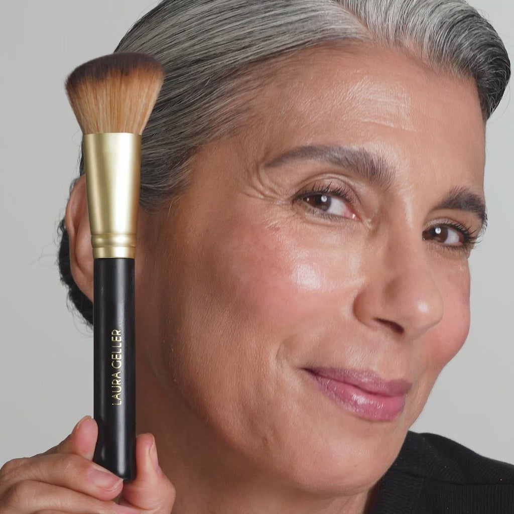 This angled blush brush is shaped to hug your cheekbones for perfect blush application.